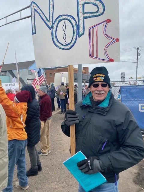 Saturday’s crowd consisted of residents mainly from the Hayward area and neighboring towns, including Cable, Stone Lake, Ojibwa, Winter, and Exeland. This is a shift to higher local attendance than the first No Kings rally held June 14, 2025, when more tourists attended.