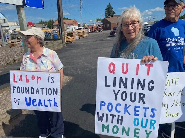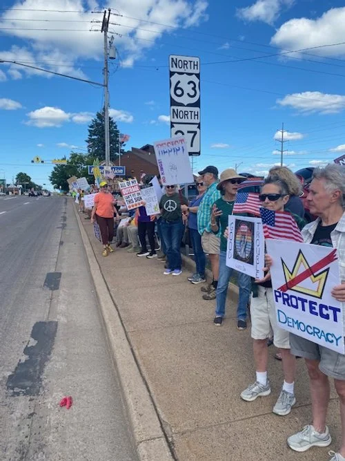 The Aug. 2 rally included many first-time participants, and organizers asked everyone to bring a friend to future events, including a town hall with Wisconsin Rep. Angela Stroud on Aug. 18 in Hayward, and the next national day of action—set for Labor Day, Sept. 1.