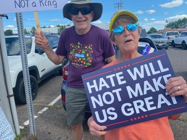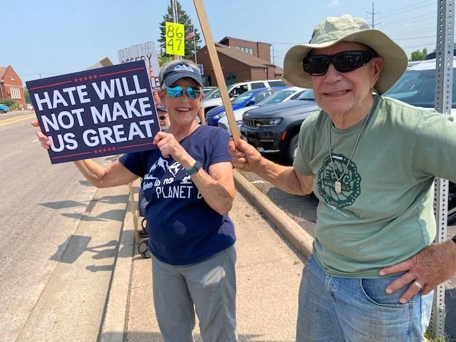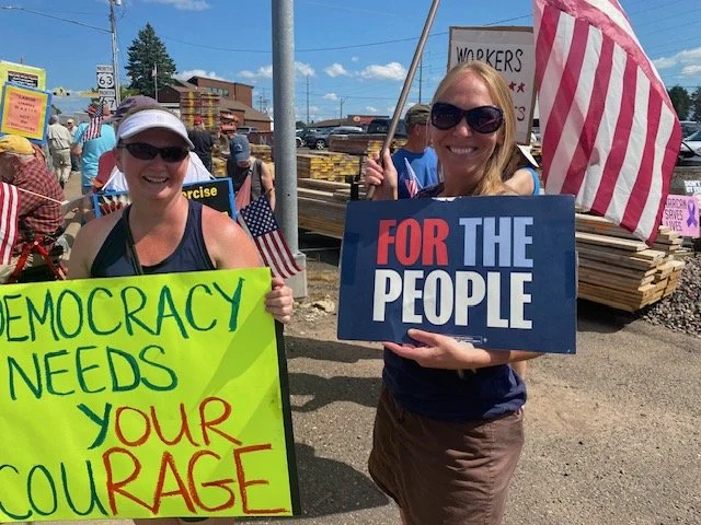 The rally was sponsored by Up North Engaged, an Indivisible group, and the Sawyer County and LCO Democratic Party. The next National Day of Action is scheduled for Saturday, October 18. We’re planning another rally on Democracy Corner in Hayward from noon to 1:30 p.m. on the 18th. Watch for more information on our website and other communication channels. Meanwhile, here are some photos from the Labor Day rally.