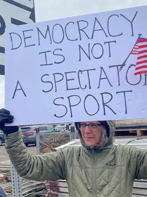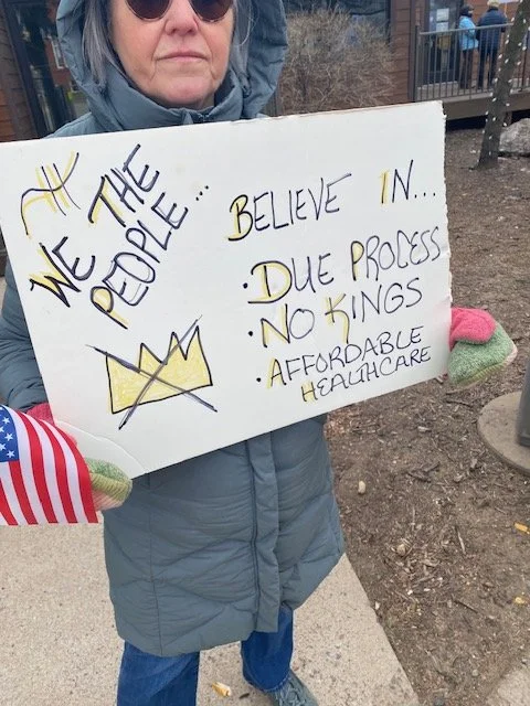 People came to the rally to proclaim their support for democracy and their opposition to the autocracy perpetrated by the Trump regime. Rallygoers brought signs focusing on critical threats to civil society, including the occupation of Minneapolis by rogue ICE agents operating outside the law.