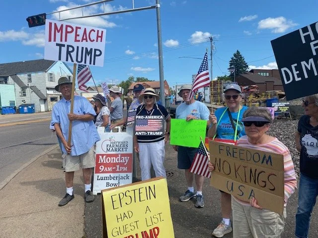 The rally was sponsored by Up North Engaged and the Sawyer County and LCO Democratic Party as part of the 50501 national movement.