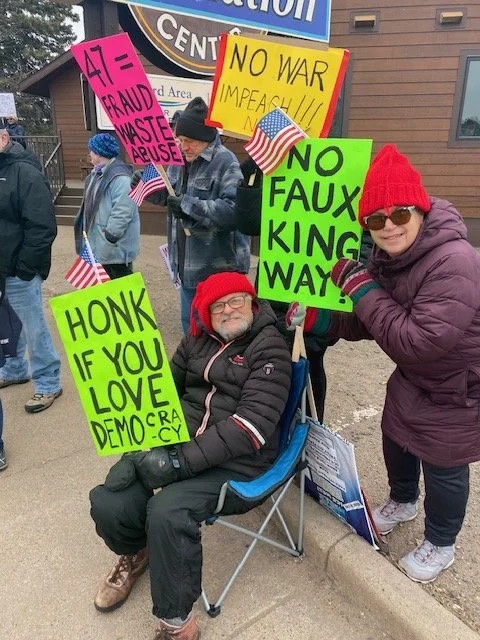Five Sawyer County residents recently joined what’s becoming a weekly gathering of resistance against Donald Trump and Elon Musk, as well as support for Susan